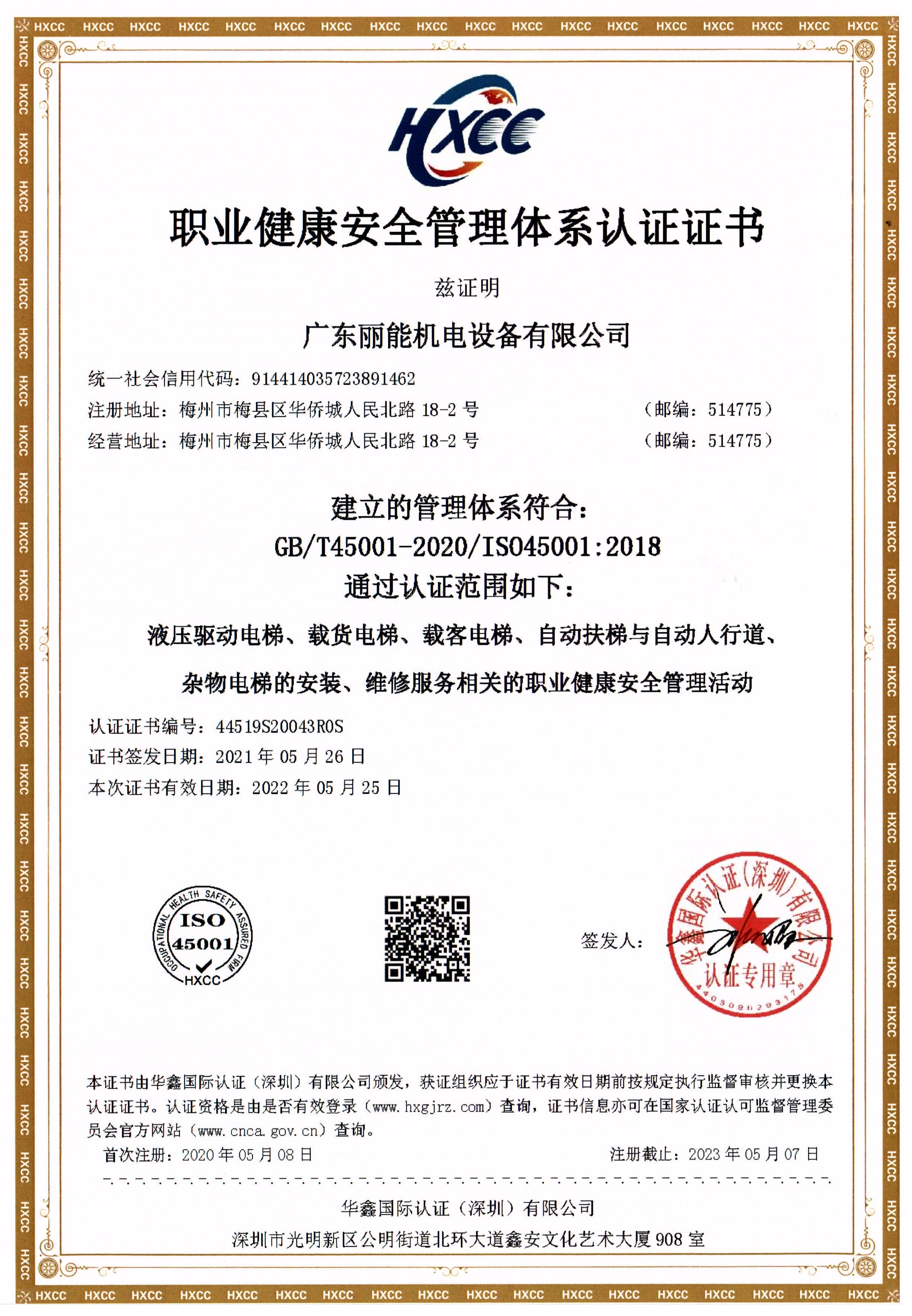 職業健康安全管理體系認證證書【GB/T45001-2020/ISO45001:2018】