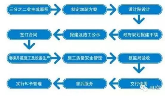 其中,對于已經預留電梯井的,不需要規劃審批手續和建設工程規劃驗收手續;工程投資額小于30萬元的,不需要辦理建設工程施工許可證。